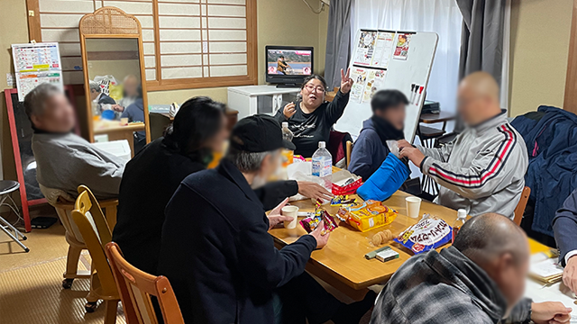 一度は居住困難に陥った経験を持つ当事者自身が、社会的孤立状態に陥っていると危惧される対象者に、個別訪問を実施しています。対象者の状況に応じて居場所サロンへの参加、LINEのオープンチャットや安否確認グループへの参加を促しています。